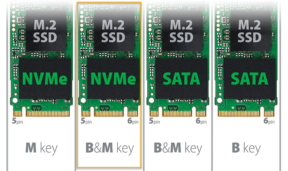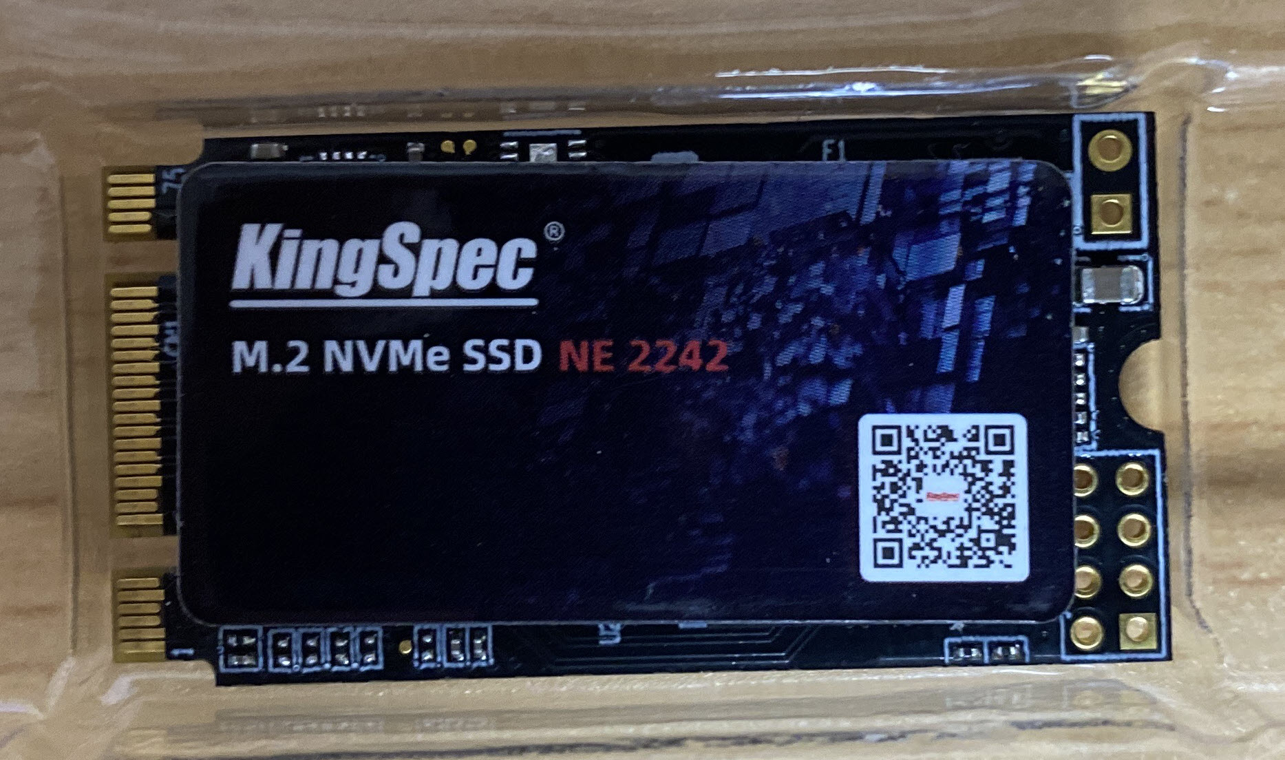 소켓 모양만 보면 B키 혹은 B+M키만 호환되는 형태여서 M.2 SATA방식의 SSD가 들어갈줄 알았지만, 좀더 검색을 해보니 M.2 NVMe 방식이 맞다고 함. 레딧의 웬디 SN520을 끼웠더니 정상작동한다는 글을 보면 좀더 확실해진다.