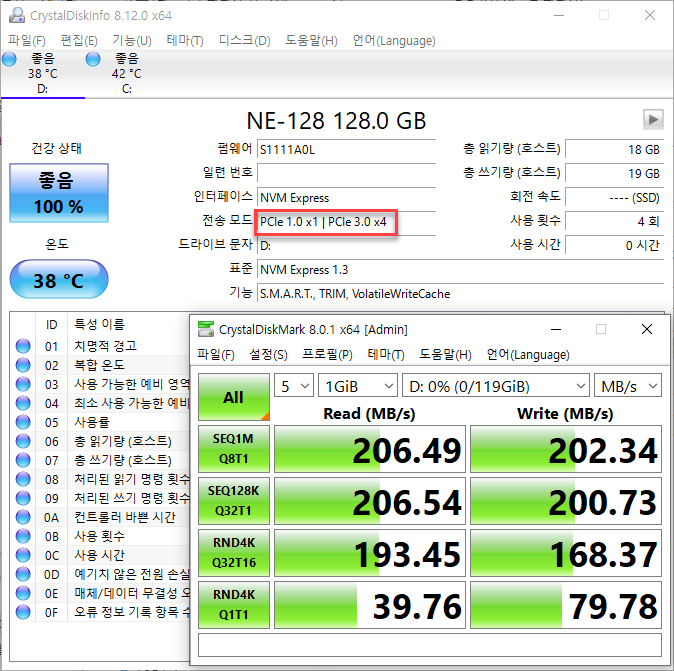 결국 알리익스프레스에서 B+M키 방식의 NVMe SSD를 구매하긴 했는데, 실패할 경우를 고려해서 제일 싼 128기가를 구매했다ㅡㅡ;